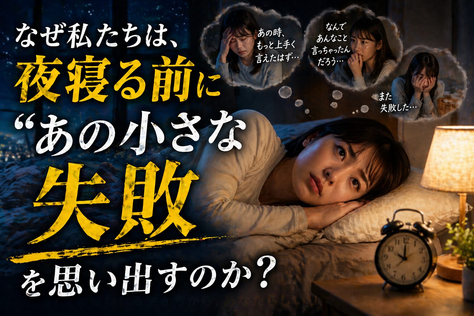 夜、ベッドに潜り込んで目を閉じ、さあ眠ろうとした瞬間。 今日職場で口走ってしまったあの一言や、会話中のちょっとした気まずい沈黙を、不意に思い出してしまうことはありませんか?